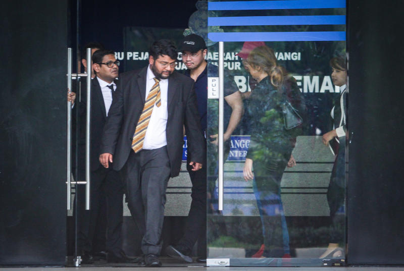 Mr Haziq Abdullah Abdul Aziz (centre) being released on bail from the Dang Wangi District Police HQ in Kuala Lumpur on June 15, 2019.