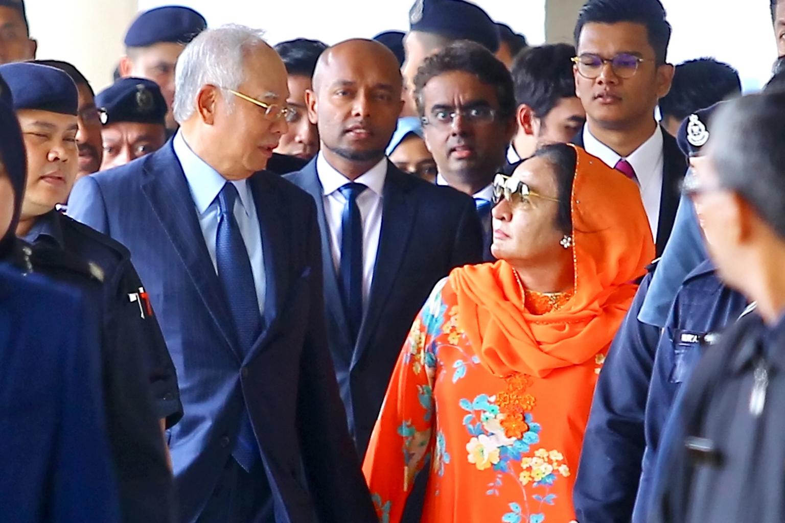 Former Malaysian prime minister Najib Razak and his wife Rosmah Mansor leaving the Kuala Lumpur Courts Complex together on Oct 4, 2018.