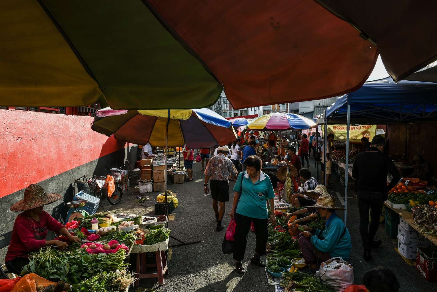 Malaysians shop for vegetables along a lane beside a wet market in Bentong on April 5, 2017.