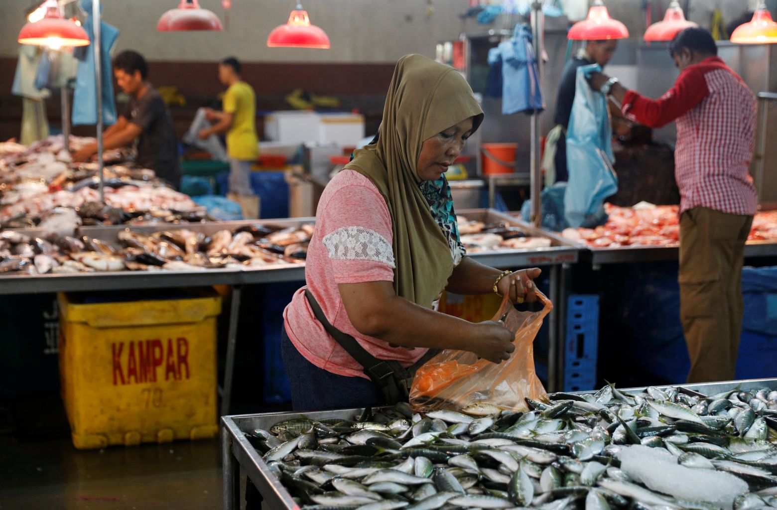 People buying fish at a wet market in Malaysia's Johor Bahru.
