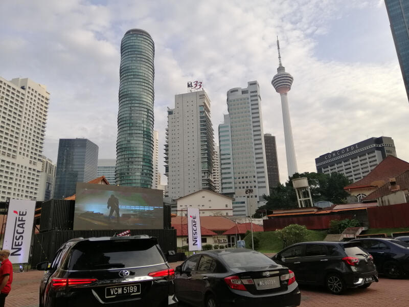 At the M-Junction drive-in cinema in a carpark, a stone's throw from the iconic Petronas Twin Towers, moviegoers can watch movies on the outdoor 9m by 4m screen, against the stunning backdrop of the KL skyline.