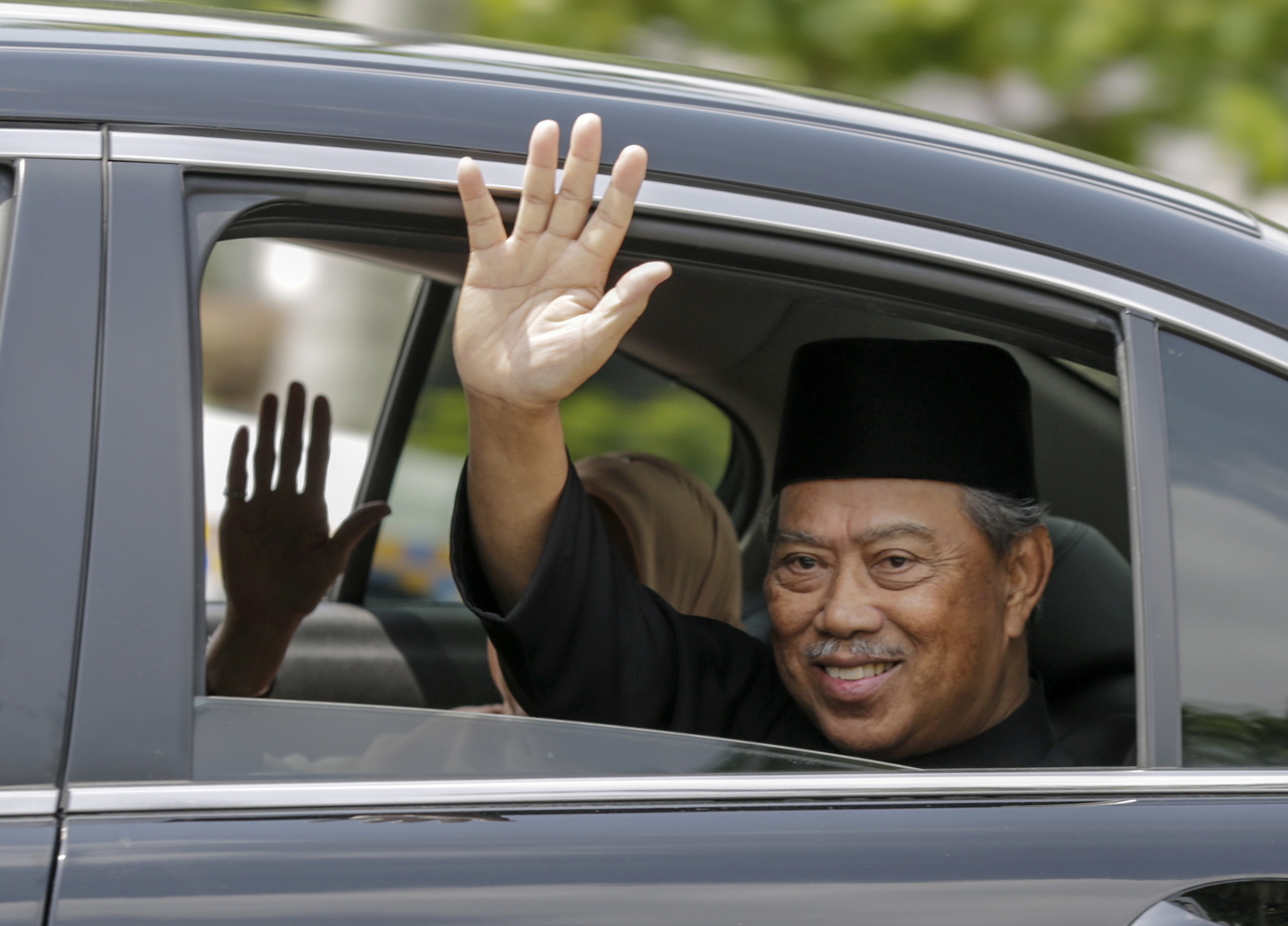 Malaysia's Prime Minister Muhyiddin Yassin waves to media after his inauguration ceremony in Kuala Lumpur on March 1, 2020.