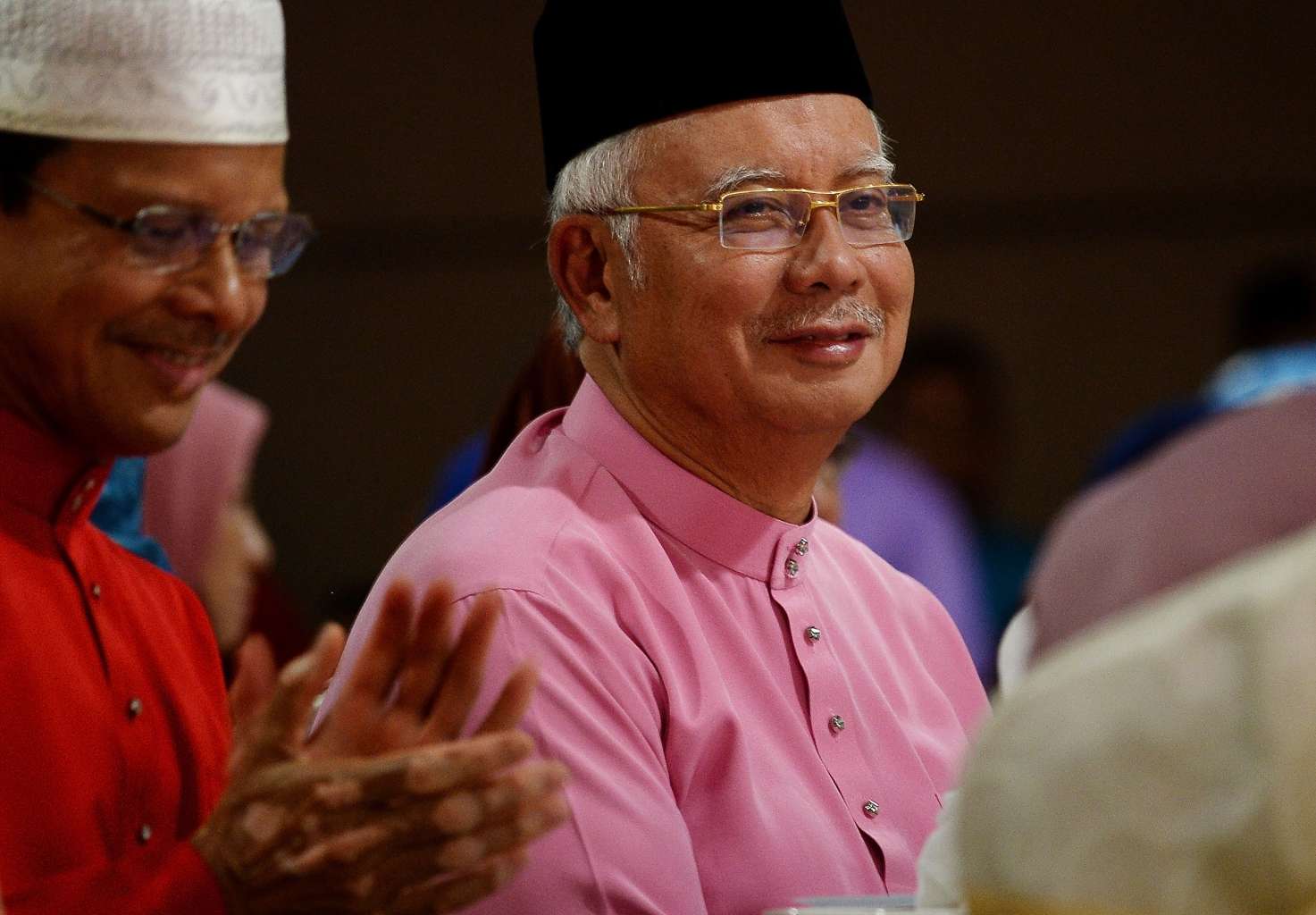 Malaysia's Prime Minister Najib Razak (right) looks on during a Ramadan event at the Putra mosque in Putrajaya, on June 25, 2016.