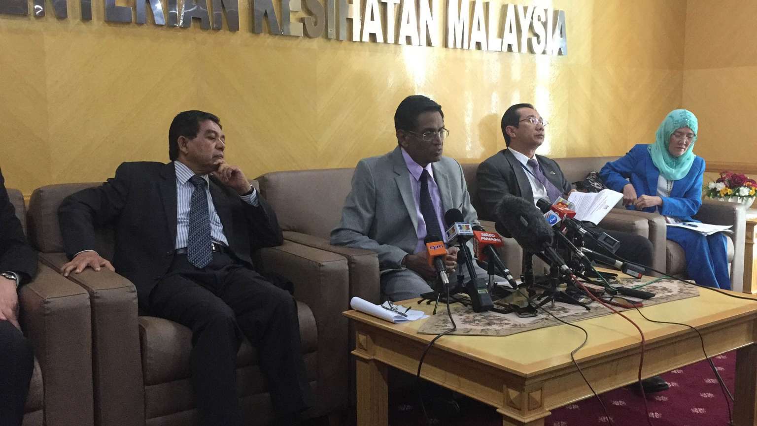 Malaysia's Health Minister Subramaniam Sathasivam (second from left) said his ministry will hospitalise all pregnant Zika patients to be treated by specialists.