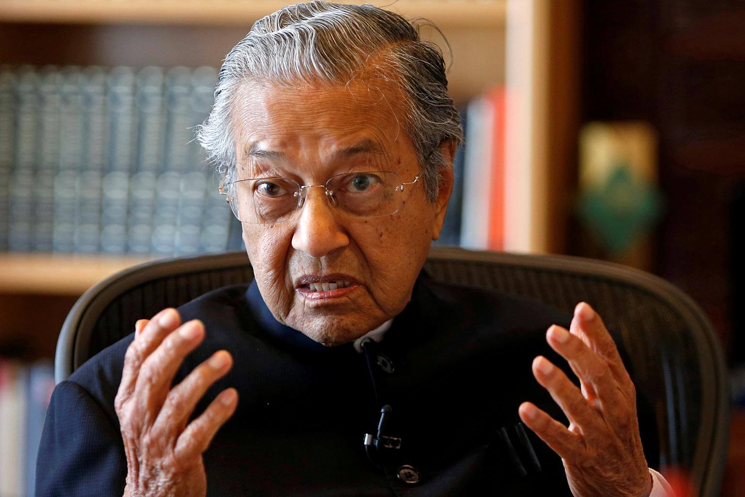 Former Malaysian prime minister Mahathir speaks during an interview with Reuters in Putrajaya.