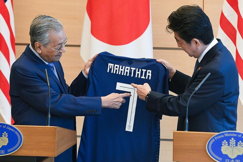 After the event, Mr Abe presented Dr Mahathir with a Japan World Cup team jersey printed with Dr Mahathir's name and the number 7 to show he is Malaysia's seventh prime minister.