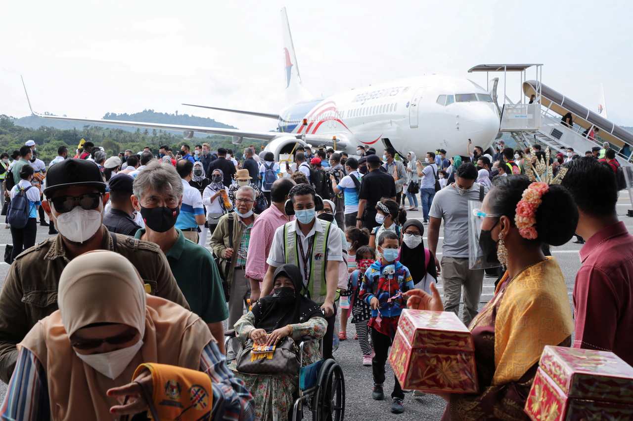 Tourists arriving at Langkawi's airport after the island opened to domestic visitors on Sept 16, 2021.