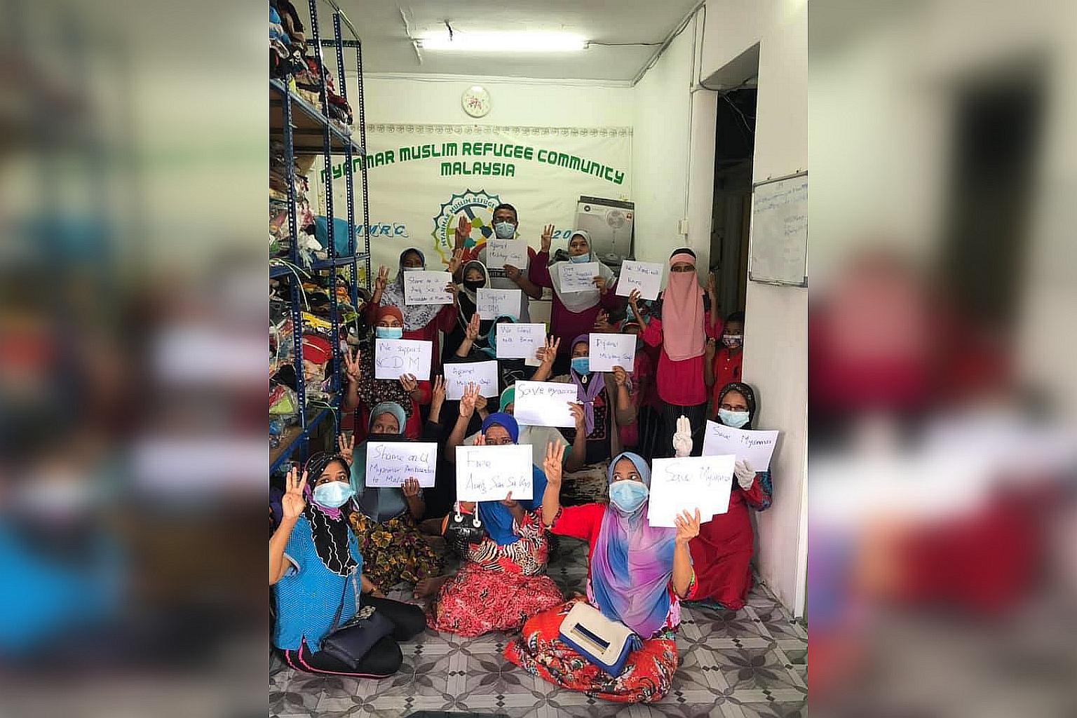 Members of the Myanmar Muslim Refugee Community protesting, on Feb 8, 2021.