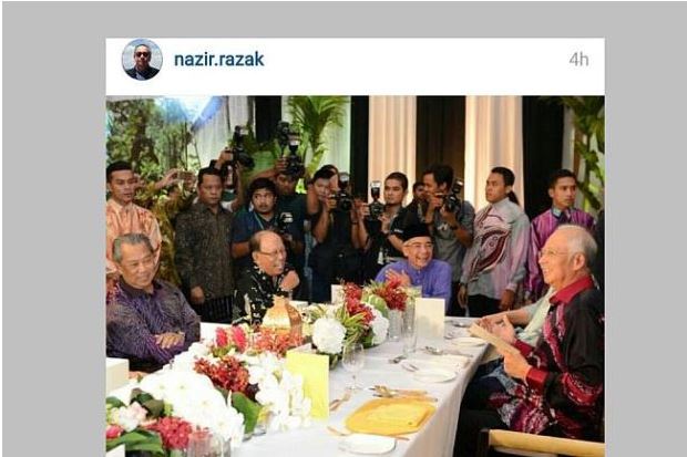 In the picture, Najib and Muhyiddin were all smiles as they shared a light moment with Nazir, who is the younger brother of the Prime Minister.