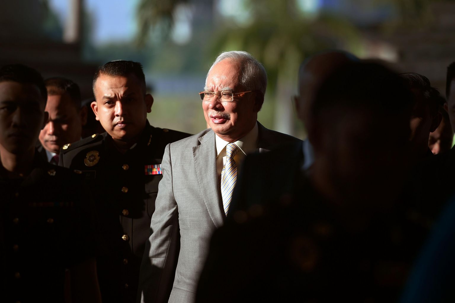 Malaysia's former prime minister Najib Razak being escorted by police to the courthouse in Kuala Lumpur on Oct 25, 2018.