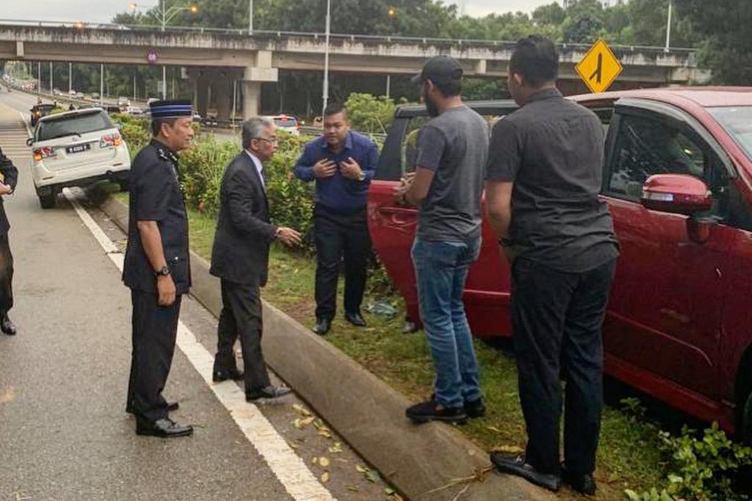 Several photos of Sultan Abdullah standing by the road checking on the driver while his bodyguards looked on were posted on the Istana Negara's Instagram page.