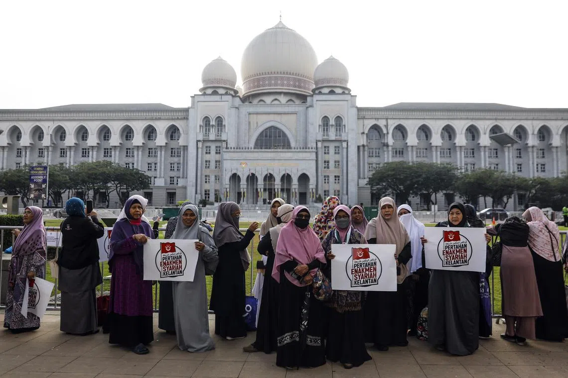 A crowd outside Malaysia’s apex Federal Court in Putrajaya on Feb 9, ahead of the court’s decision to annul 16 provisions of Islamic criminal laws enacted by Kelantan state.