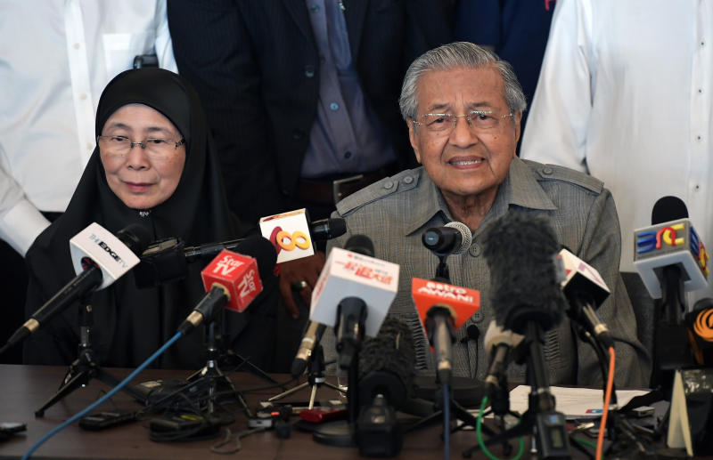 PKR president Wan Azizah Wan Ismail and Prime Minister Mahathir Mohamad attending a press conference at the Sheraton Petaling Jaya Hotel on May 10, 2018.