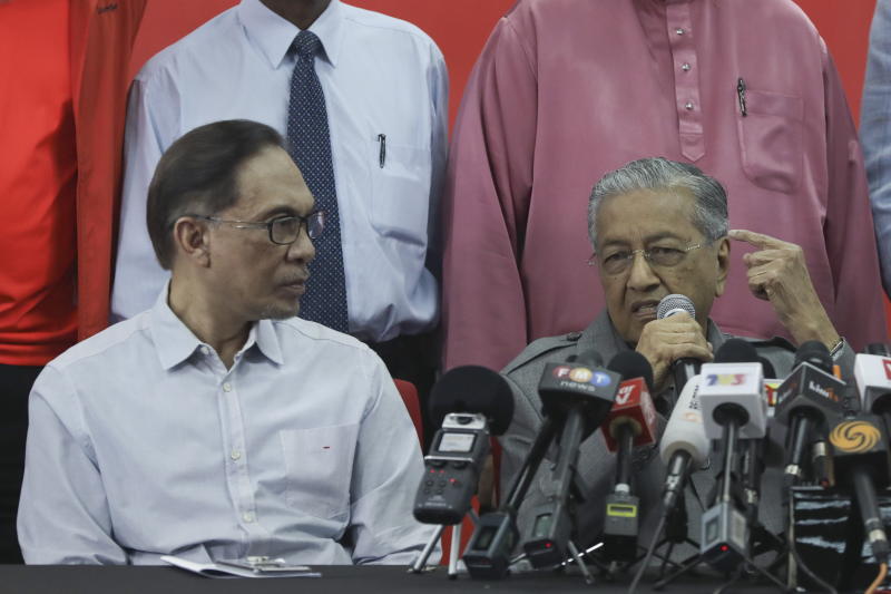 Malaysian Prime Minister Mahathir Mohamad (right) will hand over to Datuk Seri Anwar Ibrahim (left) after his stint at the premiership.