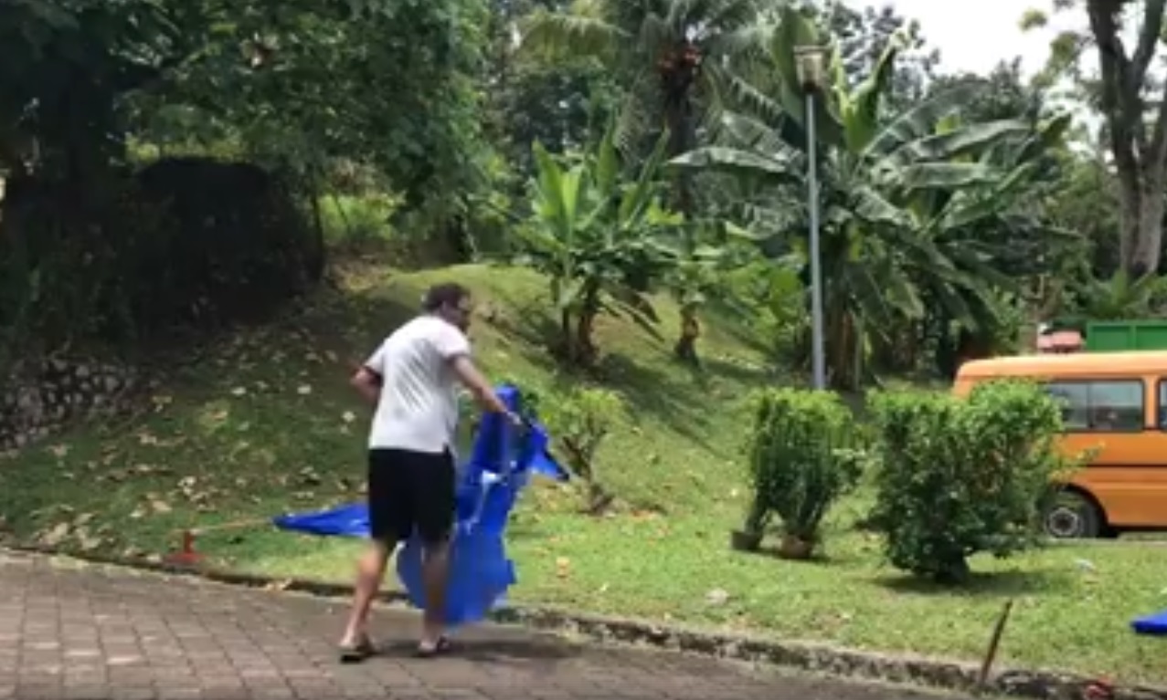 The man was seen removing Barisan Nasional flags and throwing them to the ground in the viral video.