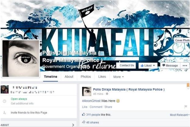 The hackers had changed the profile picture and cover photo of the Royal Malaysian Police Facebook page to that of the Islamic State.