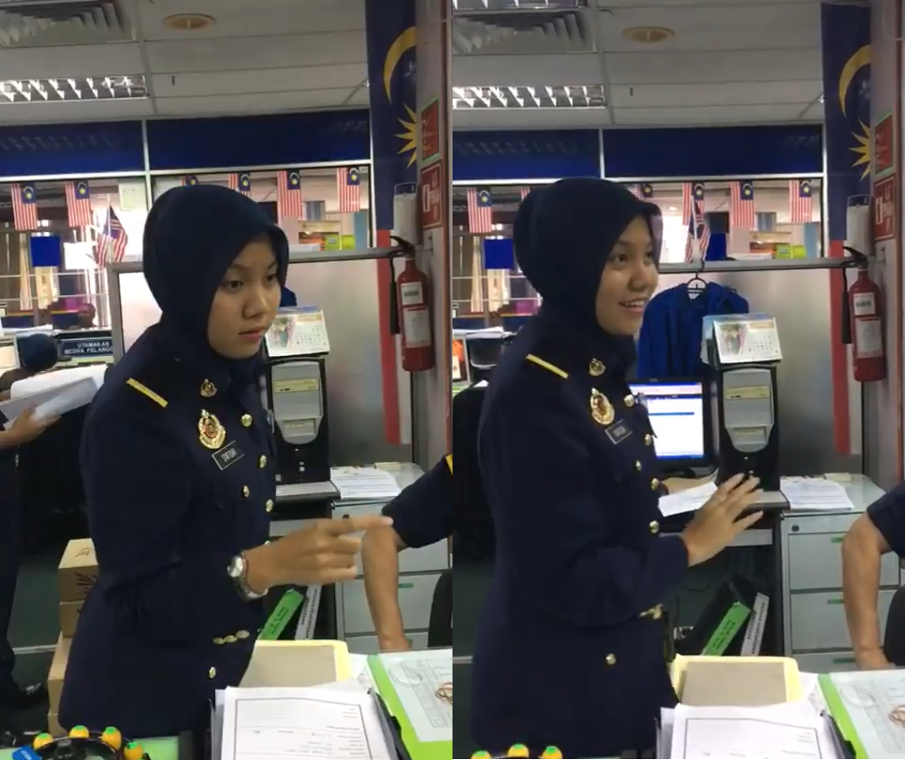 Ms Nur Syafiqah Azaman was seen explaining to two Chinese nationals the procedure for a car ownership transfer, in a 1 minute 36 second video that has gone viral on social media.