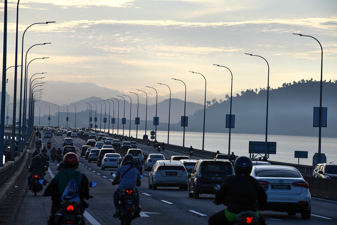 Vehicles at Penang Bridge on Oct 11, 2021. Inter-state travel has been allowed again in Malaysia after being banned for nine months.