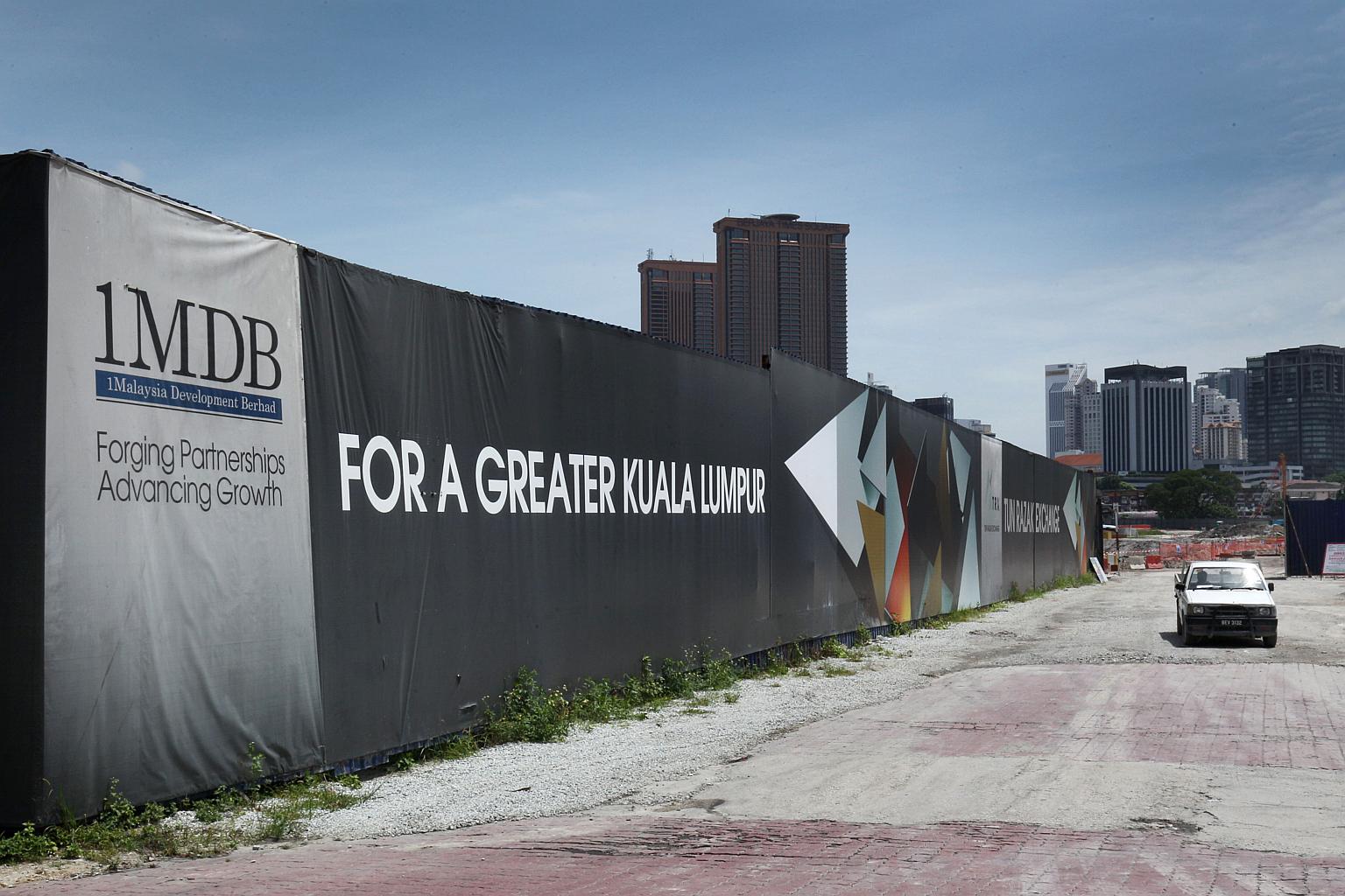 Signage for 1MDB is displayed at the site of the Tun Razak Exchange (TRX) project in Kuala Lumpur, Malaysia.