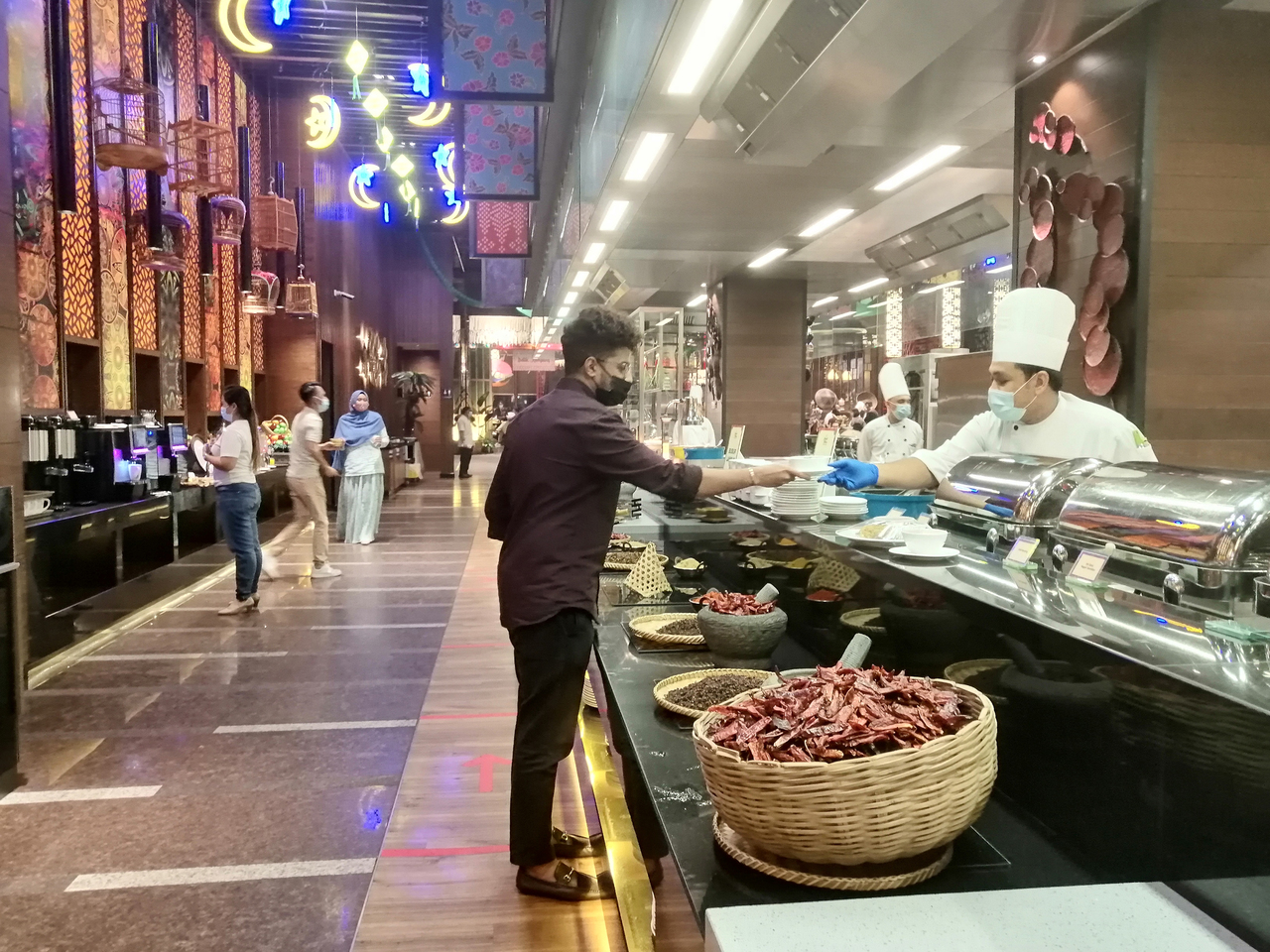 Sunway Resort in Selangor, which is also offering a staycation package for the month, has halved its seating capacity for the restaurant serving its "buka puasa" buffet, from 400 to 200, and implemented safety measures, including providing guests with gloves for dining.