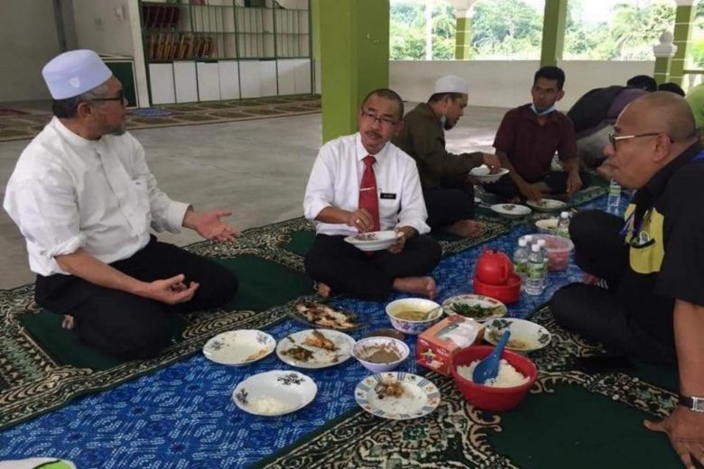 Deputy minister Noor Azmi Ghazali (centre) having a meal at an Islamic school in Perak on April 18.