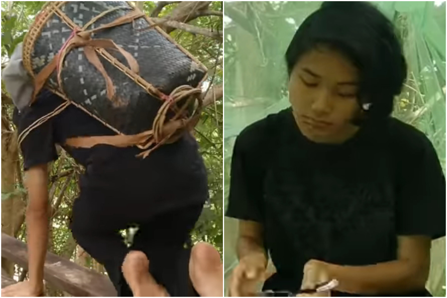 Veveonah Mosibin showed how she slept on a tree to get an Internet signal for an exam online, in her village in Sabah.