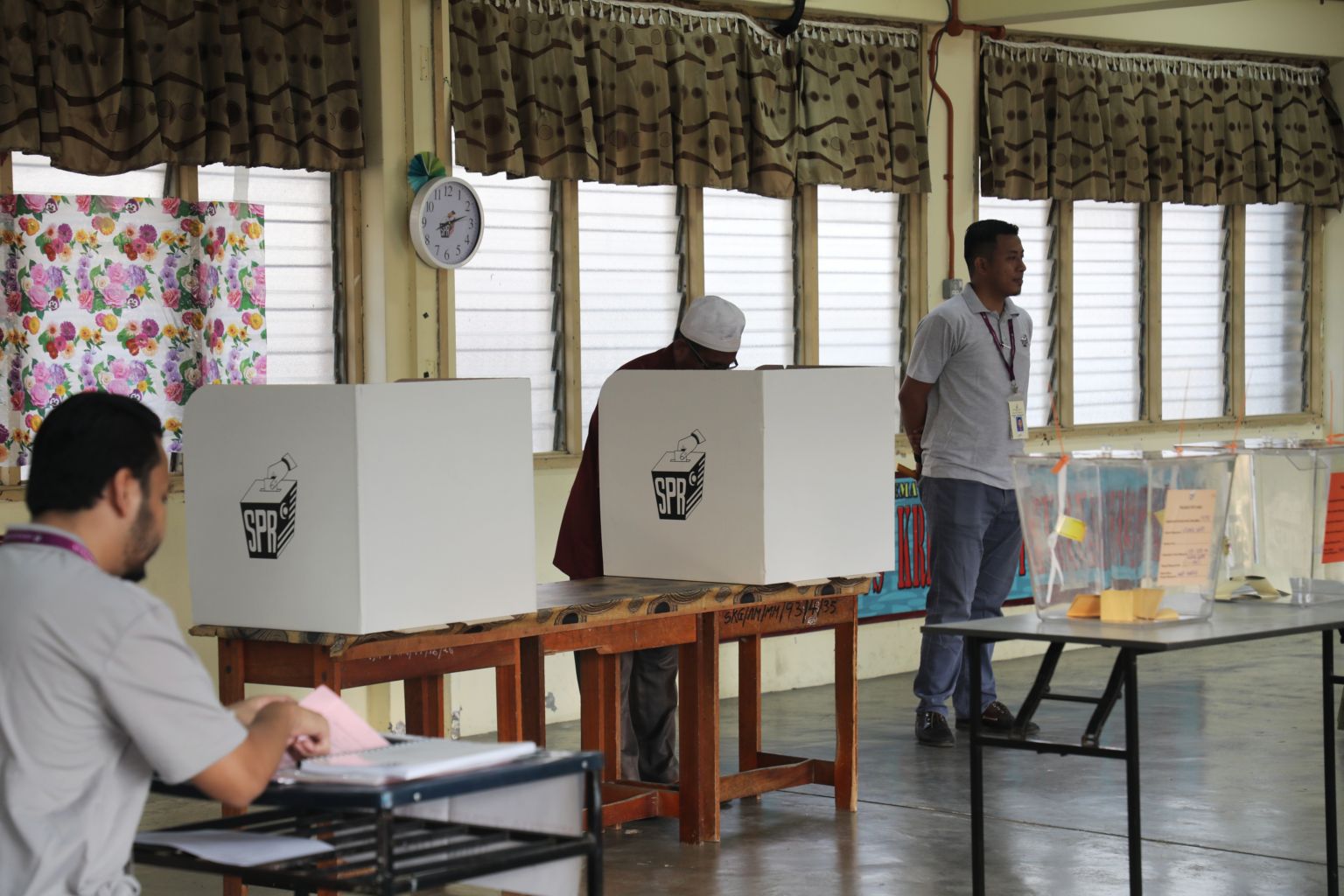 In a photo taken on May 9, 2018, a man is seen casting his vote during Malaysia's general election.