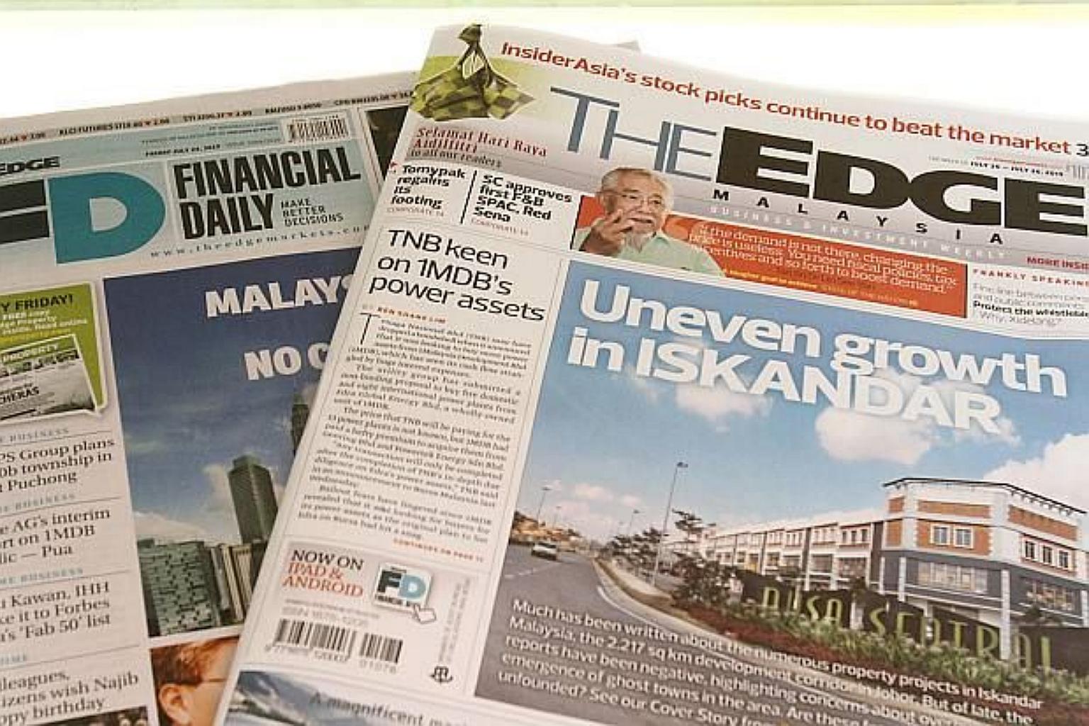 The Edge Financial Daily and The Edge Weekly.