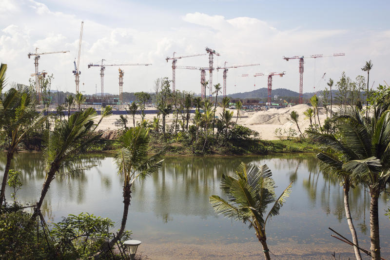 Construction cranes stand on a property development at Iskandar Malaysia in Johor Bahru.