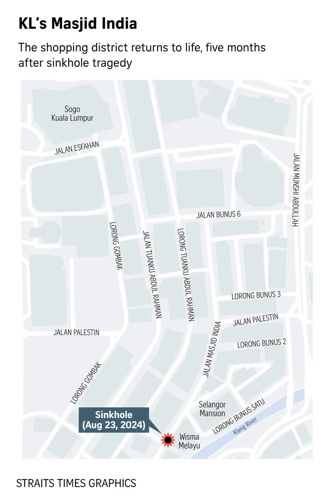 KUALA LUMPUR – A shopping district in Kuala Lumpur is gearing up for its busiest period of the year, five months after it made global headlines following a tragic incident in which a tourist from India fell into a sinkhole, leaving the area bereft of shoppers.