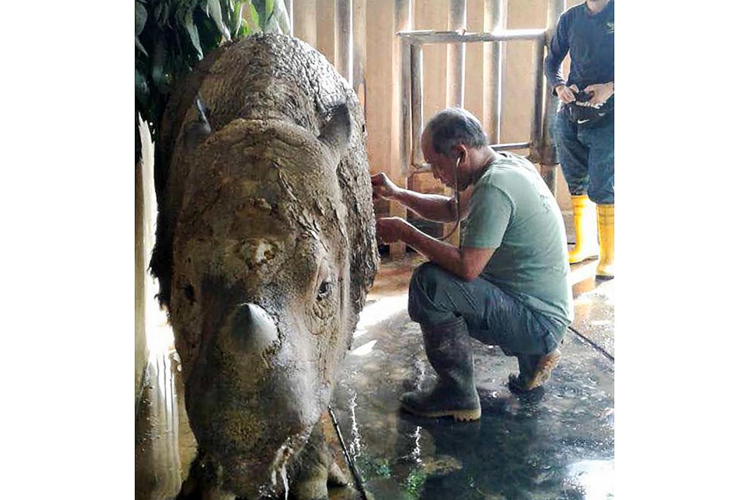 The smallest of the rhino species and the only Asian rhino with two horns, the creatures were declared extinct in the wild in Malaysia in 2015.