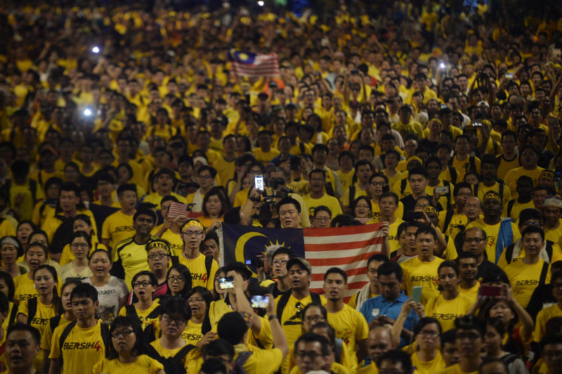 Protesters at the Bersih rally at the areas surrounding Merdeka Square in Kuala Lumpur, Malaysia on 29 August 2015. Malaysia's population is expected to grow from 32.4 million last year to 32.6 million this year.