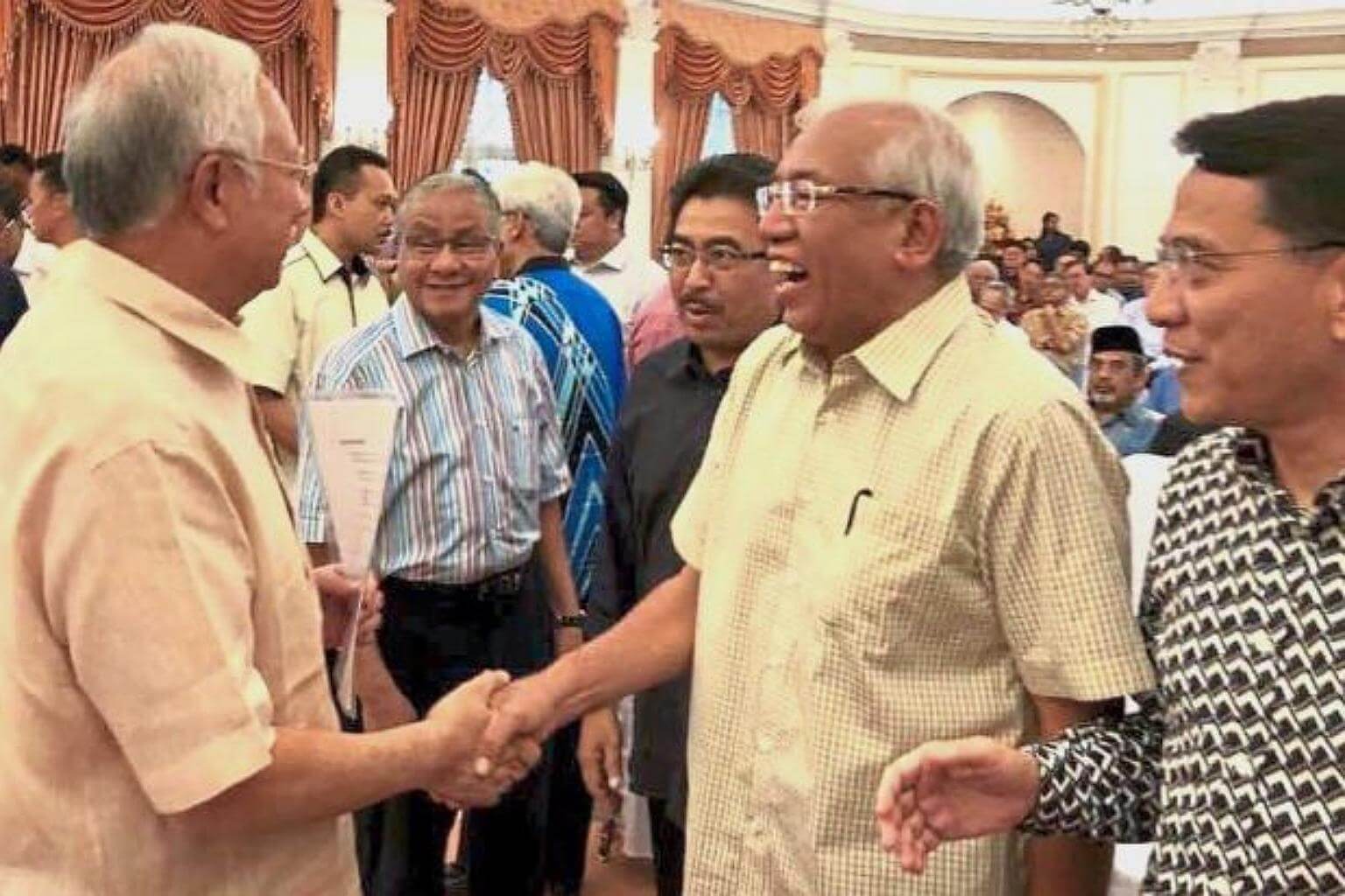 Malaysia's Prime Minister Najib Razak (left) shaking hands with Education Minister Seri Mahdzir Khalid at a Barisan pre-council meeting in Seri Perdana, Putrajaya.
