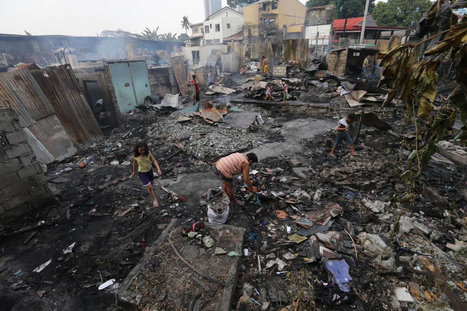 Filipinos search for salvageable materials following a fire in Quezon City, northeast of Manila.