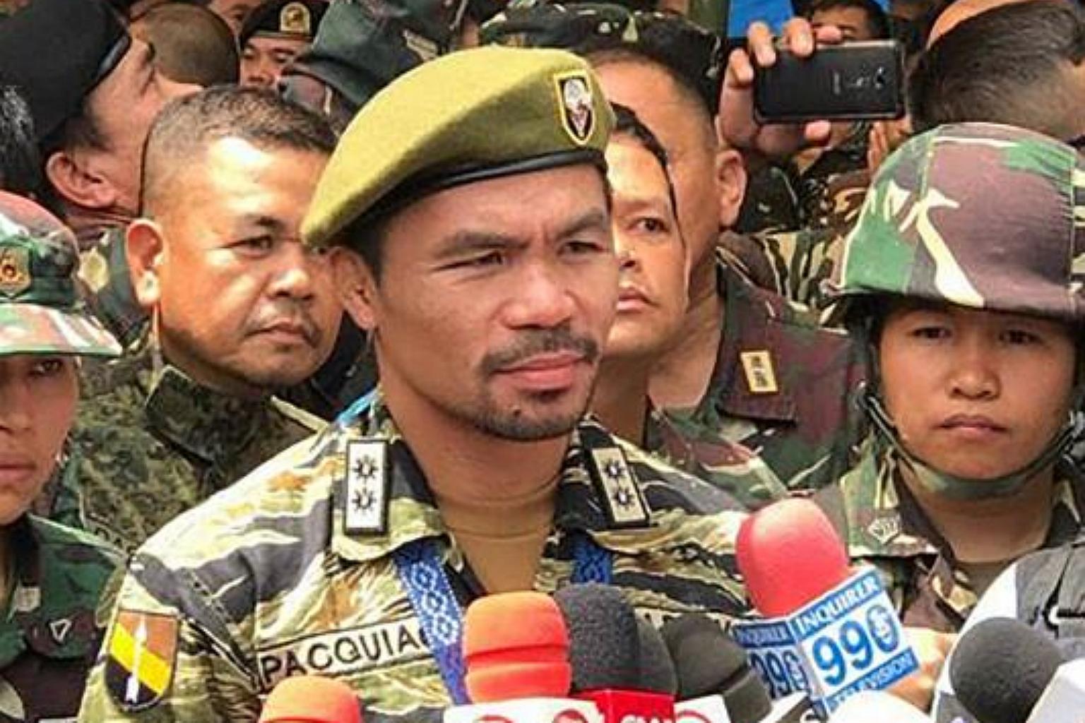 MANILA (AFP) - Boxing hero Manny Pacquiao lifted the spirits of Philippine troops in a visit on Saturday (July 29) to a southern city where soldiers have been battling pro-Islamic State in Iraq and Syria (ISIS) militants for over two months.