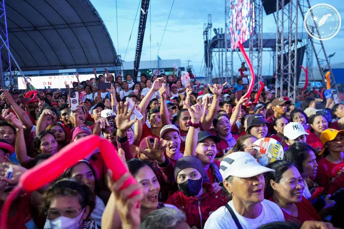 Supporters of the Marcos-backed senatorial candidates cheer at a campaign rally in Davao del Norte on Feb 15.