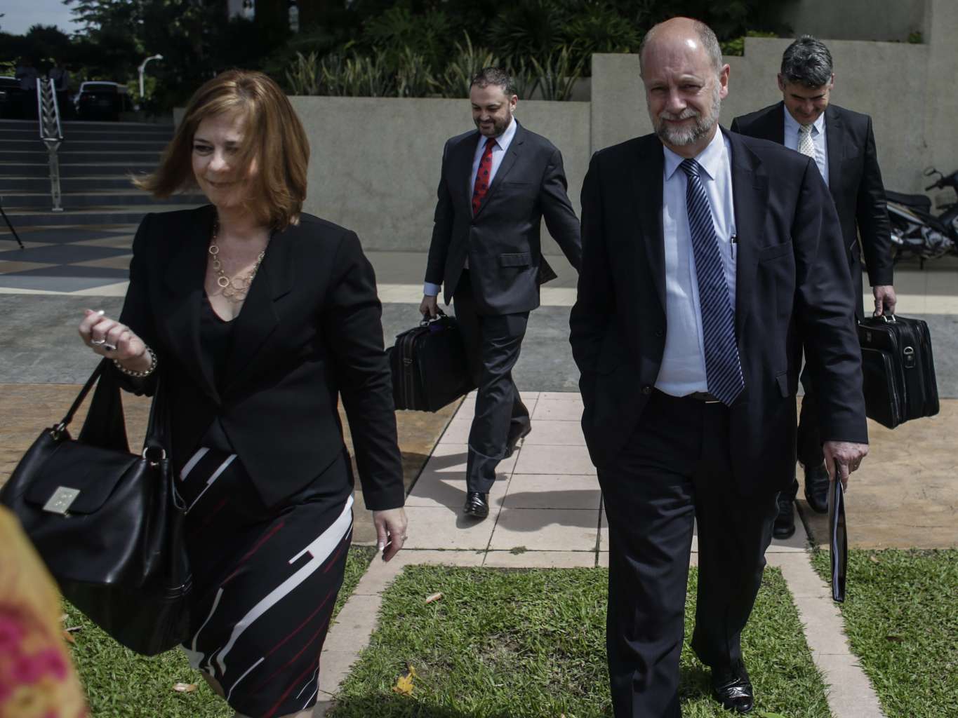 Joint Agency Coordination Centre (JACC) officers outside the building of Malaysia's Ministry of Transportation in Putrajaya, Malaysia, on June 20, 2016.