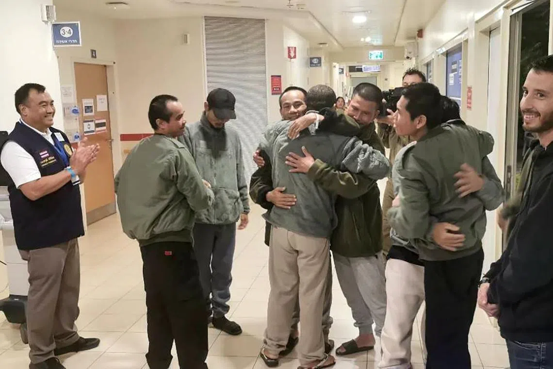 Pictures released by the ministry show the freed Thai nationals receiving medical care, as well as embracing one another at Shamir Medical Centre in Israel.