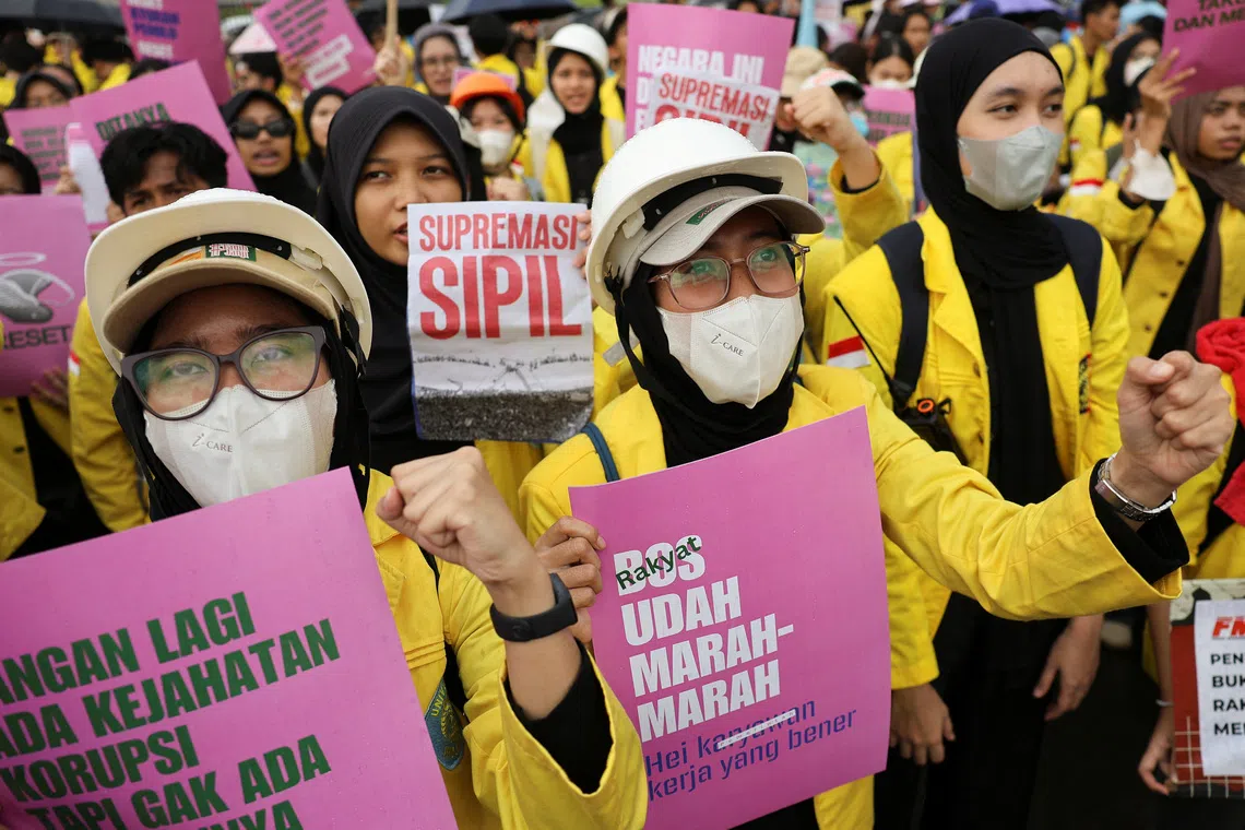 University students at a protest outside the Parliament building in Jakarta on Sept 9