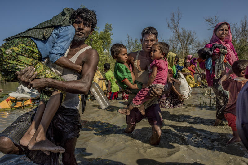 Rohingya refugees from Myanmar crossing the Naf River into Bangladesh, on Nov 10, 2017.