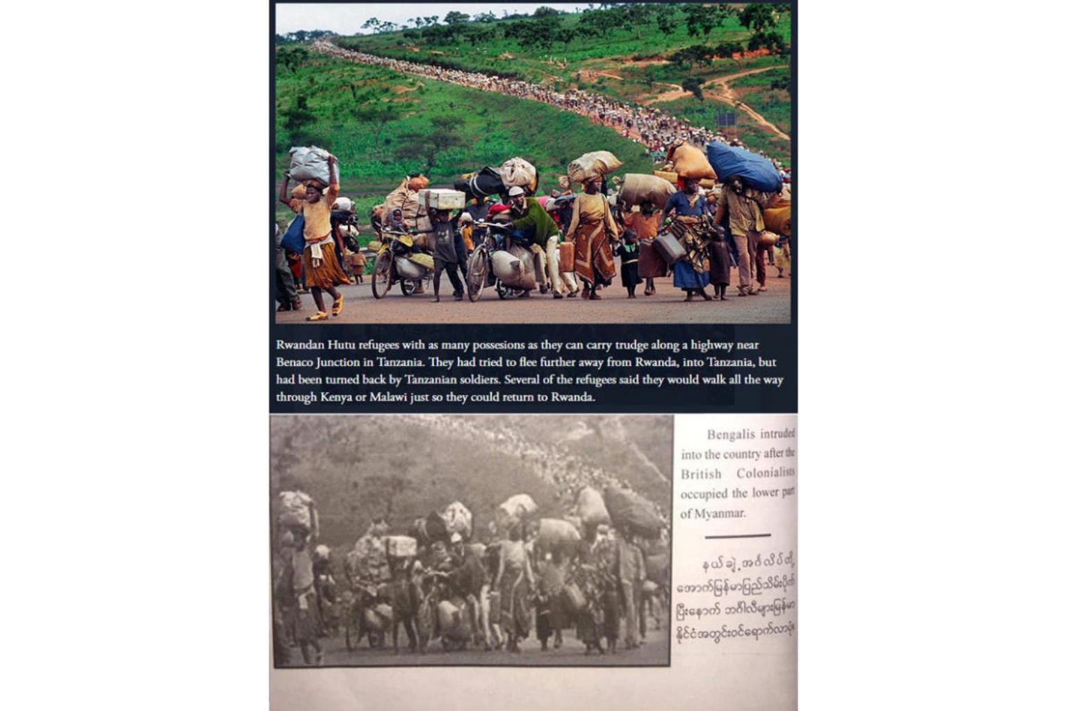 Reuters found that two of the photographs in the military book on the Rohingya crisis were actually taken in Bangladesh and Tanzania and a third was falsely labelled as showing Rohingya entering Myanmar from Bangladesh, when in reality the picture was of refugees leaving Myanmar.