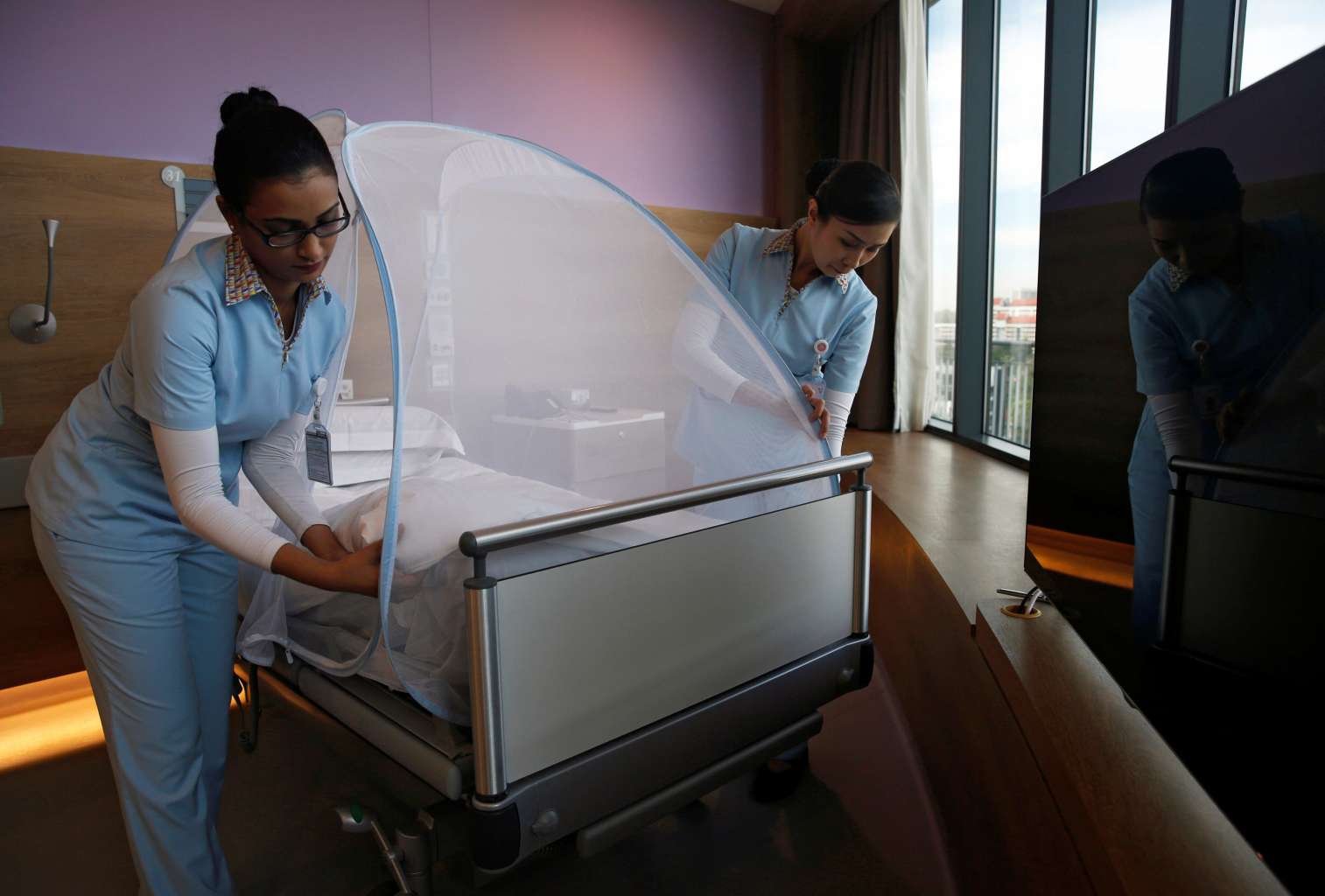 Nurses set up a mosquito tent, as part of a precautionary protocol for patients who are infected by Zika, at Farrer Park Hospital in Singapore. The Republic and Thailand – Southeast Asia’s most affected countries – have recorded a total of about 800 cases of Zika, while Myanmar just confirmed its first case.
