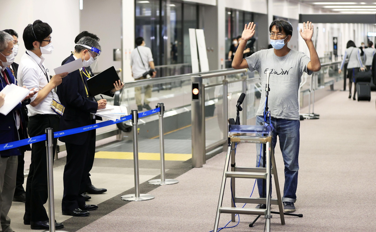 Japanese journalist Yuki Kitazumi speaking to the media upon his arrival at Narita Airport in Japan, on May 14, 2021.