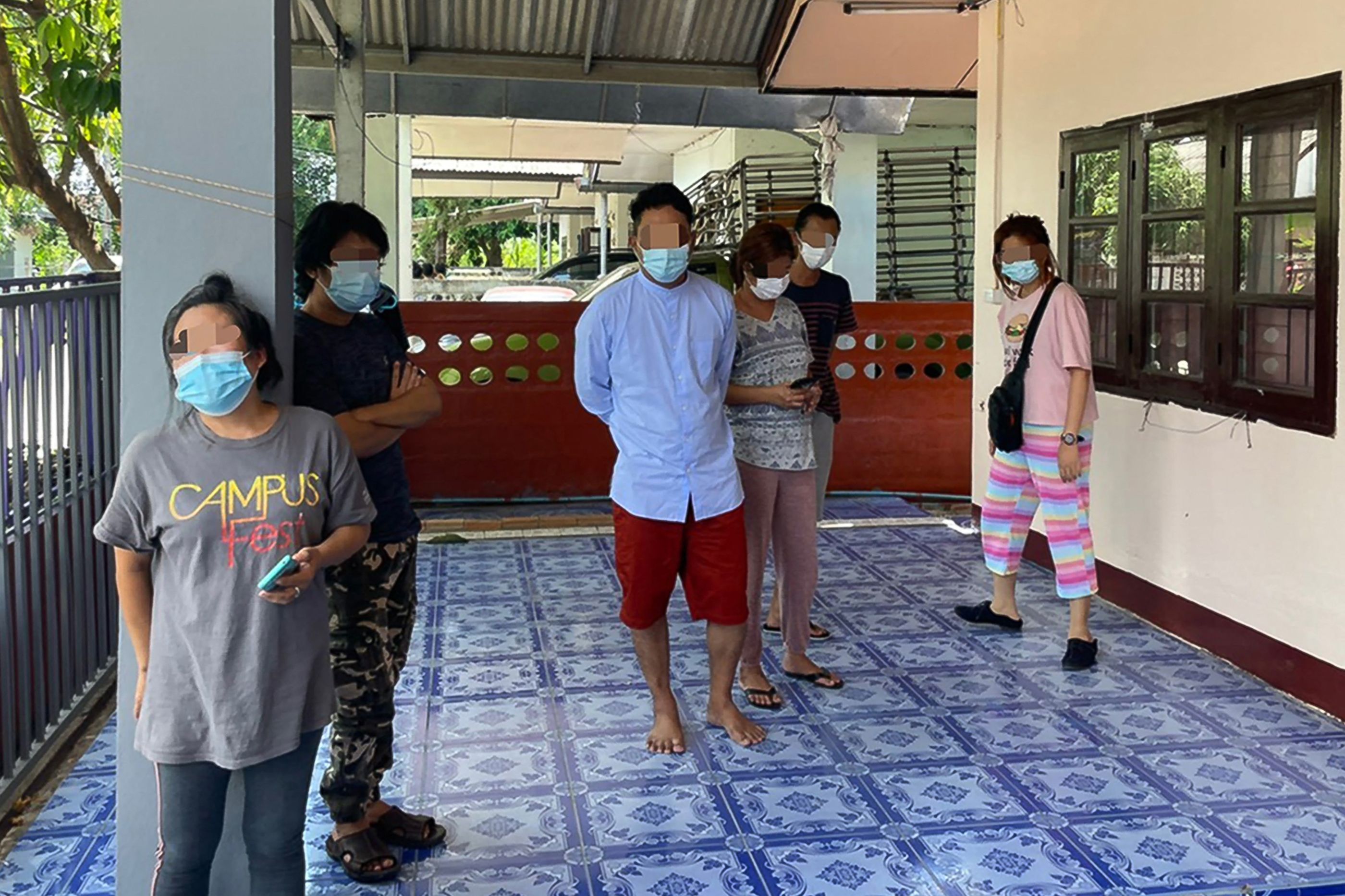 Five Myanmar nationals, including three journalists working for the Democratic Voice of Burma, during their arrest by Thai authorities in Chiang Mai on May 9, 2021.