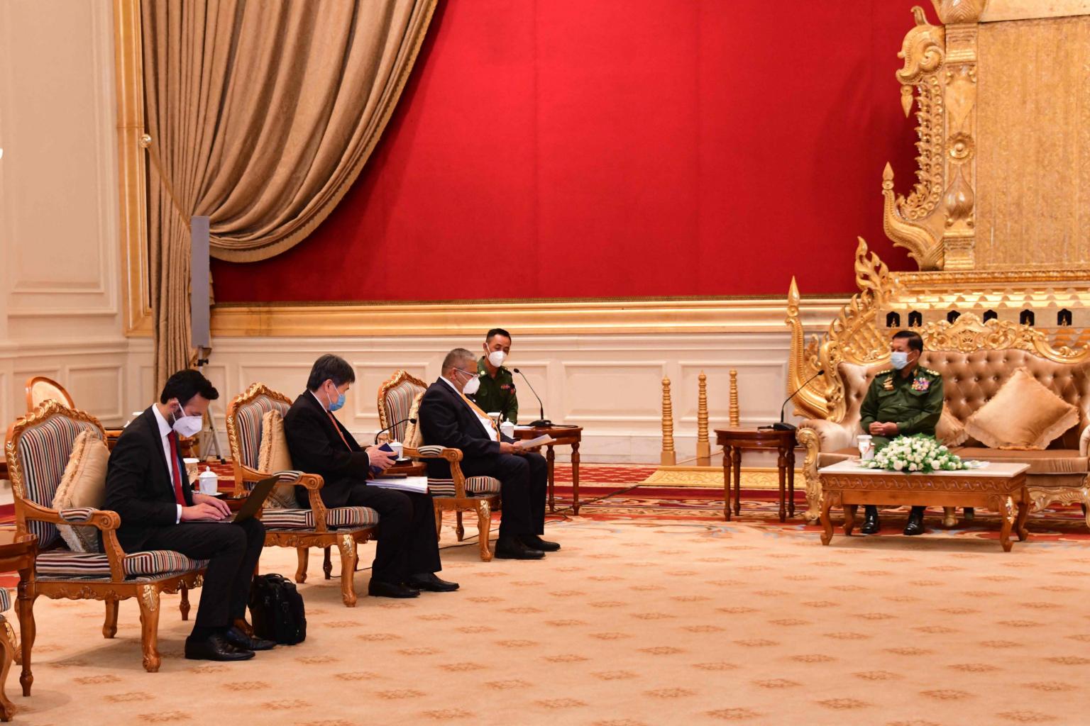 Gen Min Aung Hlaing's meeting with the Asean envoys came a day after he met the head of the International Red Cross.