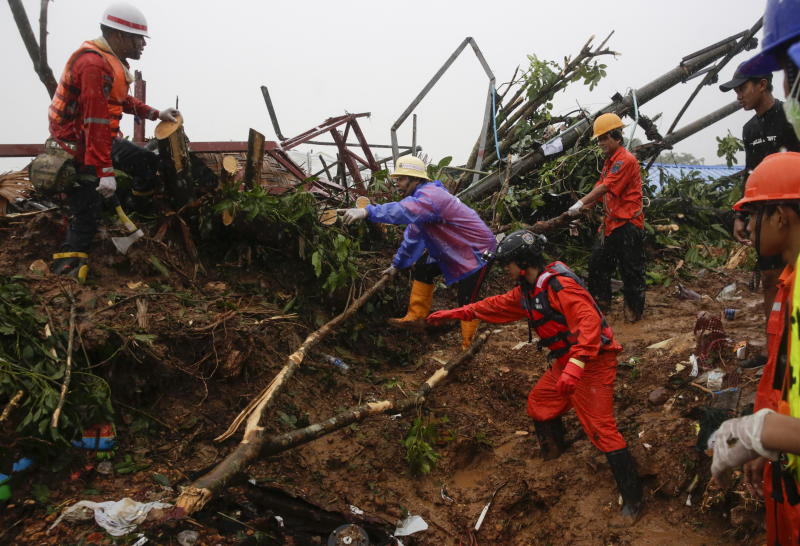 Rescuers looking for victims of a landslide near Mottama, Mon State, Myanmar, on Aug 10, 2019.