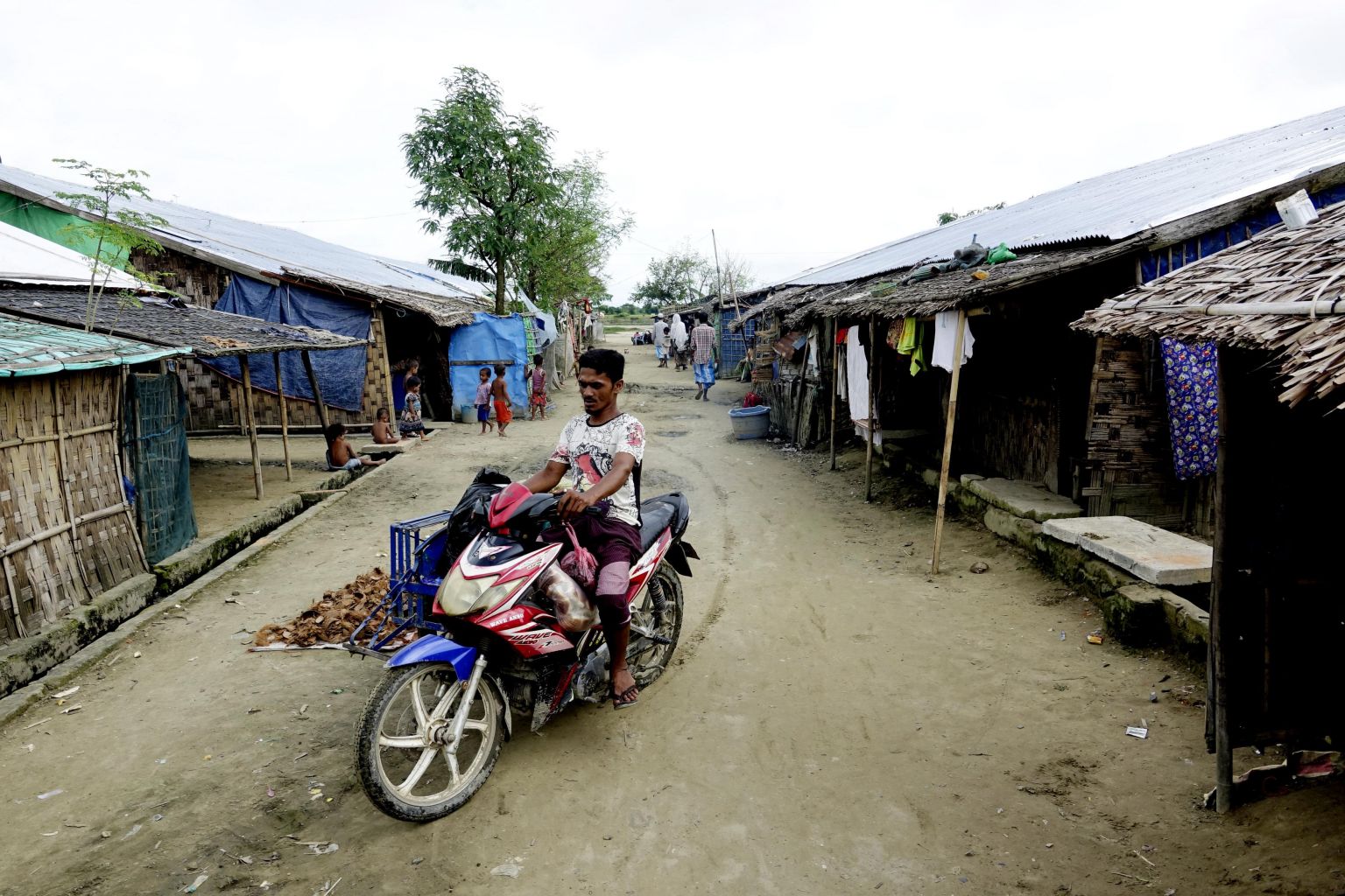 A man rides a motorbike at the Thet Kel Pyin Muslim Internally Displaced Persons camp in Rakhine, Myanmar, on Aug 26, 2019.