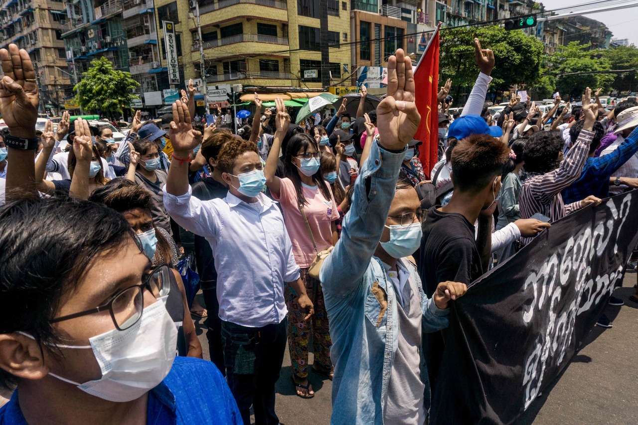 In commercial hub Yangon - where the anti-coup movement had laid low in recent weeks due to fear of crackdowns - protesters returned to the streets, flashing three-finger salutes of resistance.