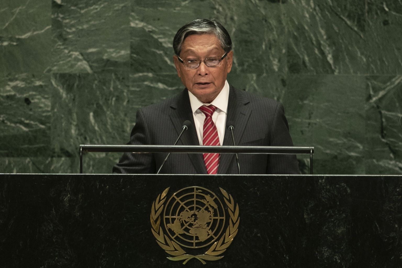 Kyaw Tint Swe, Myanmar's minister for the office of the state counsellor addresses the UN General Assembly at the UN headquarters on Sept 28, 2019.