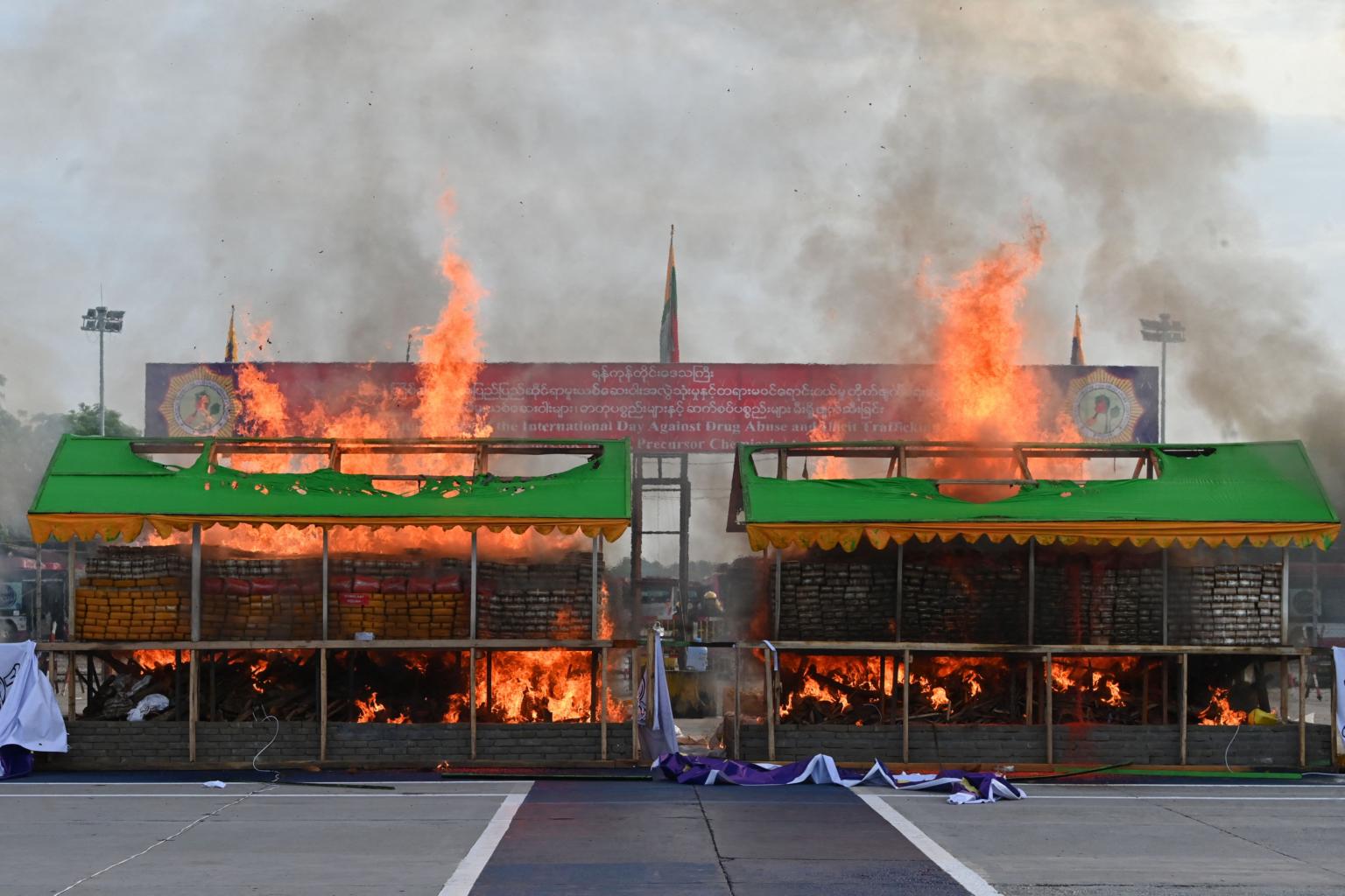 Stashes were also burned at ceremonies held in Mandalay and Taunggyi in Shan State, Myanmar's anti-drugs police department said.